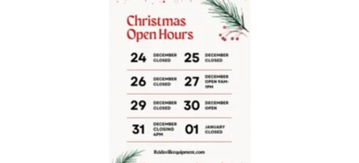 We will be closed the December 24th, 25th, 26th, and reopen Saturday the 27th.